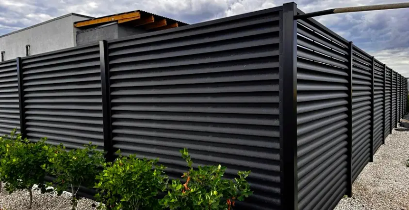 Ламель Еврожалюзи RAL7024/7024 Серый Графит 2-х сторонняя для заборов-жалюзи, беседок, пергол Секция забора жалюзи RAL7024/7024 Серый Графит 2-х сторонняя с кирпичными столбами анфас Секция забора жалюзи RAL7024/7024 Серый Графит 2-х сторонняя с кирпичными столбами Секция забора жалюзи RAL7024/7024 Серый Графит 2-х сторонняя с металлическими столбами анфас Секция забора жалюзи RAL7024/7024 Серый Графит 2-х сторонняя с металлическими столбами