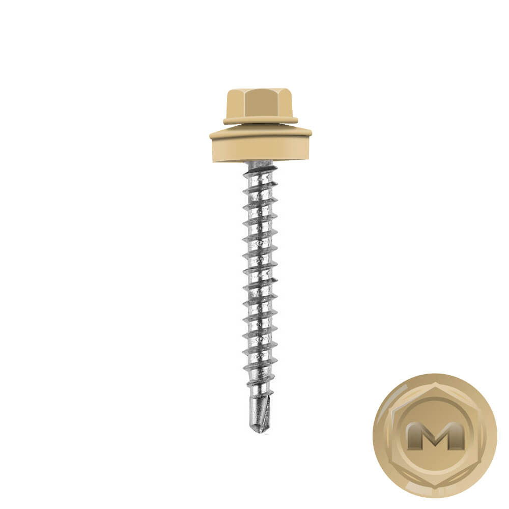 Кровельные саморезы Daxmer (Даксмер) по дереву цветом RAL1001 Клен Светлый 4,8*35мм окрашиваются УФ-стойкой полиэфирной порошковой краской. Цинковое антикоррозийное покрытие обеспечивает длительный срок службы саморезов (не менее 25 лет). Специальная металлическая шайба с ЕРDМ - уплотнителем обеспечивает плотное прилегание профилированного металла (кровли) к деревянной обрешетке, а также препятствует попаданию влаги.