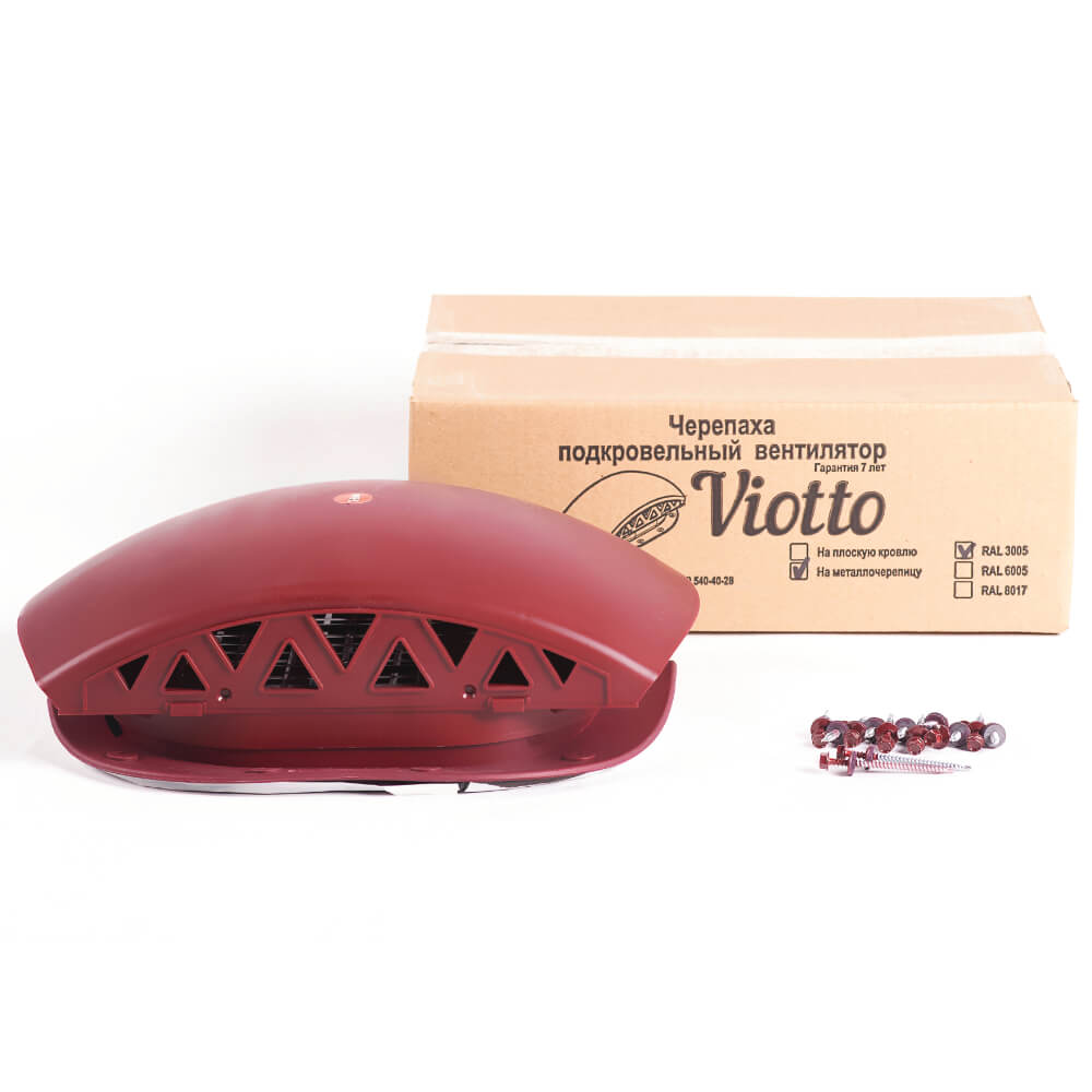 Подкровельный вентилятор "Черепаха" Viotto RAL 3005 Красное Вино для кровли из металлочерепицы в Орле