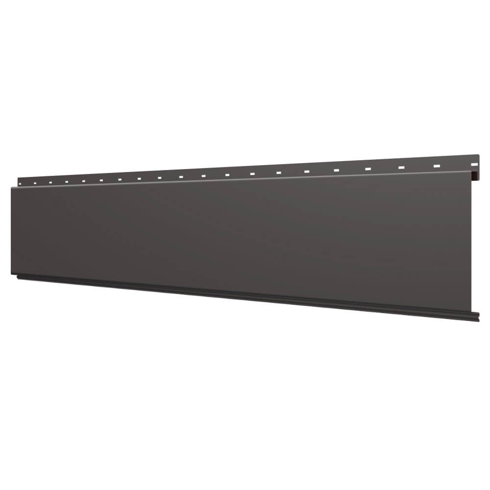 Линеарная потолочно-стеновая панель ГЛАДКАЯ цвет RAL8019 Темный Шоколад применяется в качестве софитов для подшивы крыши, наружной и внутренней отделки потолков, стен, фронтонов фасада дома в Орле.