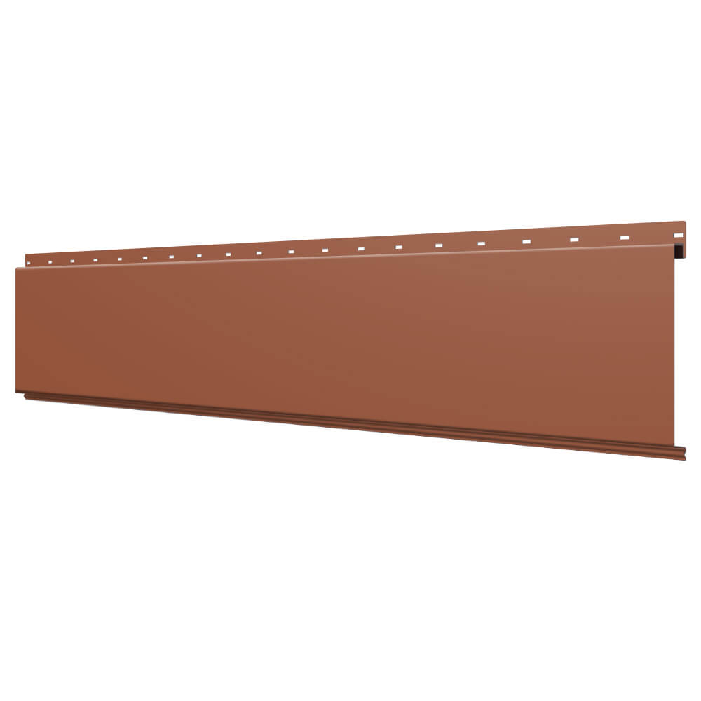 Линеарная потолочно-стеновая панель ГЛАДКАЯ цвет RAL8004 Терракотовый применяется в качестве софитов для подшивы крыши, наружной и внутренней отделки потолков, стен, фронтонов фасада дома в Орле.