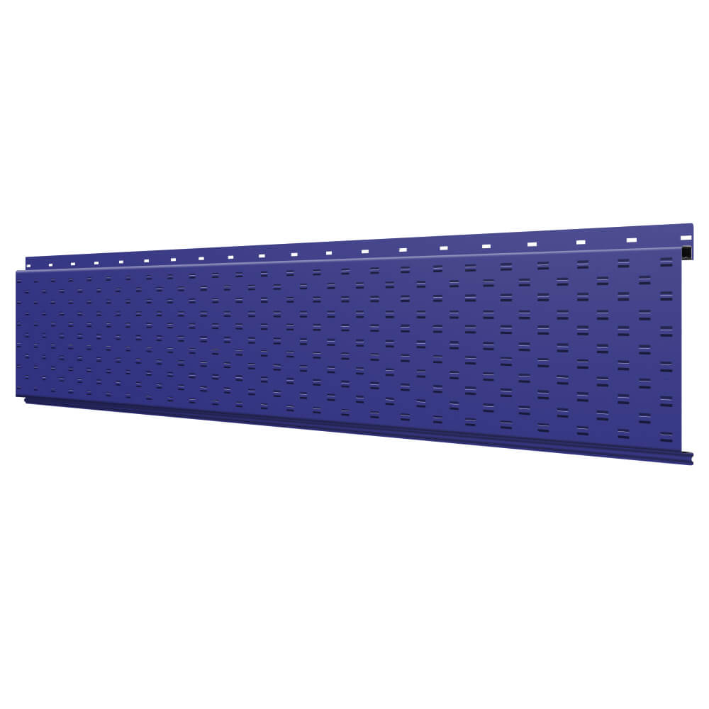 Линеарная потолочно-стеновая панель с ПЕРФОРАЦИЕЙ для вентиляции цвет RAL5002 Синий Ультрамарин применяется в качестве софитов для подшивы крыши, наружной и внутренней отделки потолков, стен, фронтонов фасада дома в Орле.