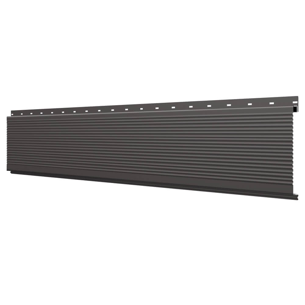 Линеарная потолочно-стеновая панель РИФЛЕНАЯ усиленная цвет RAL8019 Темный Шоколад применяется в качестве софитов для подшивы крыши, наружной и внутренней отделки потолков, стен, фронтонов фасада дома в Орле.