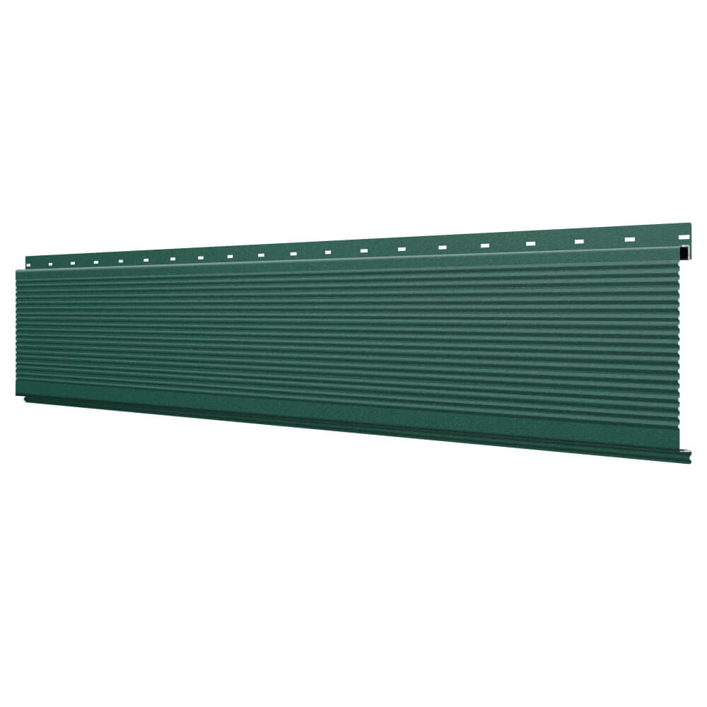 Линеарная потолочно-стеновая панель РИФЛЕНАЯ усиленная цвет RAL6005 Зеленый Мох Стальной Бархат применяется в качестве софитов для подшивы крыши, наружной и внутренней отделки потолков, стен, фронтонов фасада дома в Орле.