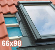 Оклад состоит из четырех основных элементов: верхнего, нижнего и двух боковых. Нижний элемент оклада имеет форму фартука, выполнен из гибкого материала, как правило свинца, имеет специальное клейкое покрытие, которое способствует герметичному соединению оклада с кровельным материалом. Благодаря своей гибкости и эластичности фартук легко принимает форму профиля кровельного покрытия.