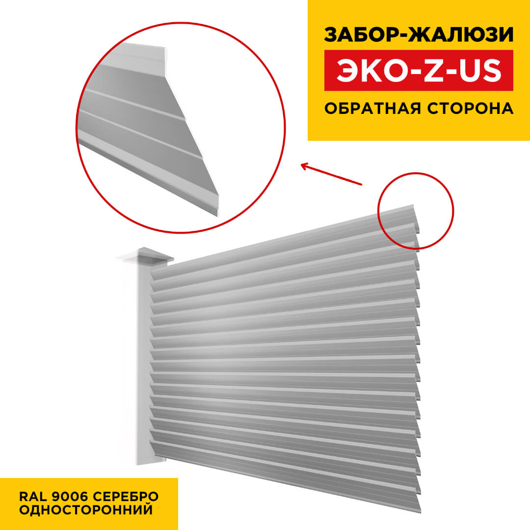 Ламель металлическая Z-образная усиленная ЭКО-Z-US, цвет RAL 9006 Серебро, длина любая кратно 1см под заказ - для забора-жалюзи, беседки, перголы в Орле