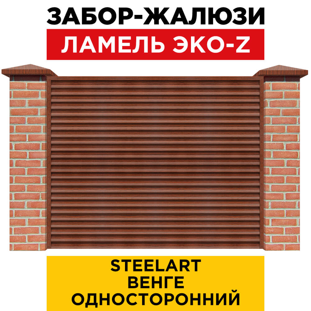 Ламель металлическая Z-образная простая ЭКО-Z, цвет под дерево Венге SteelArt одностороннее покрытие, длина любая кратно 1см под заказ - для забора-жалюзи, беседки, перголы в Орле.