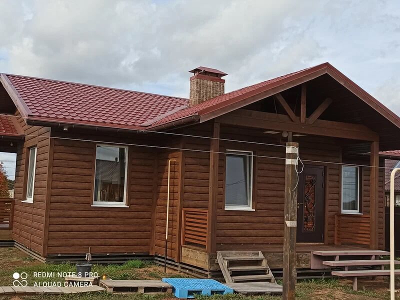 Фасад дома из металлического сайдинга Евро-Брус Каштан Корея