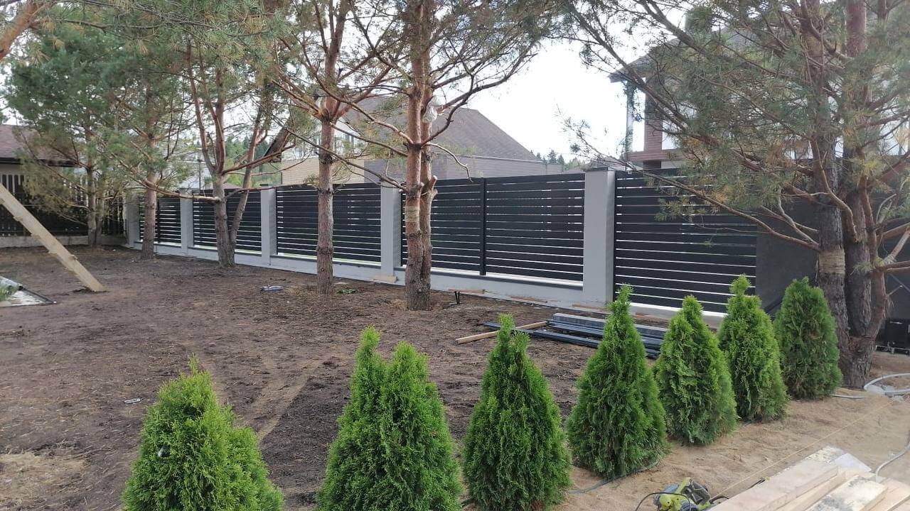 Горизонтальный секционный забор типа ранчо из металлопланкена с покрытием полиэстер цвет RAL 7024 Серый Графит отзыв