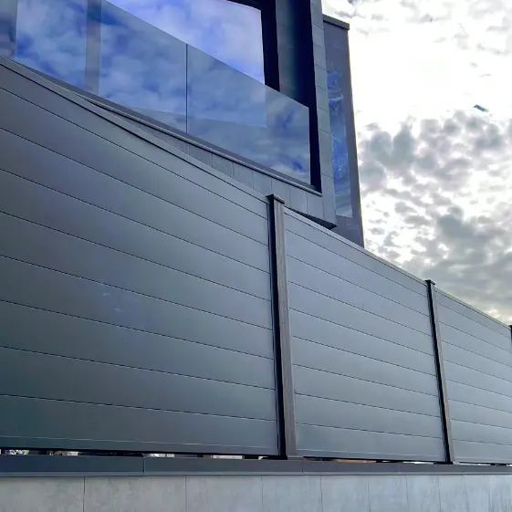 Современная и стильная деталь к вашему дому — горизонтальный секционный забор из линеарных панелей «Гладких» в изящном оттенке RAL7024 МАТТЕ Серый Графит. Матовая текстура подчеркивает статус и вкус владельца, создавая ощущение надежности и уюта. Такой забор не просто защищает территорию, а становится акцентом фасада, гармонично дополняя архитектуру и превращая пространство вокруг дома в по‑настоящему законченный и элегантный образ.